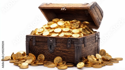 Illustration for a treasure chest overflowing with gold coins isolated on white background