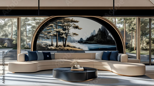 Illustration Interior Design Living Room Sofa Coffee Table Window View