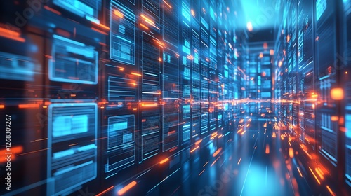Illustration of a compliant organization using advanced document management technologies to streamline governance, security, and data regulation processes