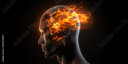 Illustration of a Glass Head with a Brain in Flames as a Symbol of Migraine or Headache AI generated