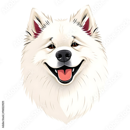 Illustration of A Samoyed dog with a big smile. png isolated background. transparent background.
