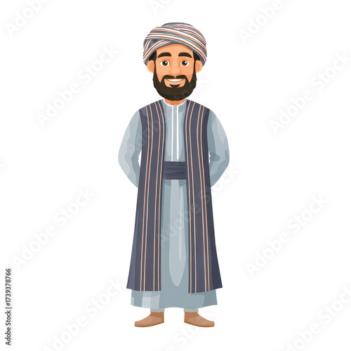 Illustration of a Smiling Middle Eastern Man in Traditional Clothing Style