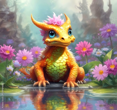 Illustration of adorable baby dragon.