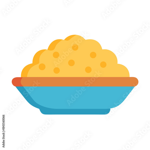 Illustration of appetizing rice in bowl against white background
