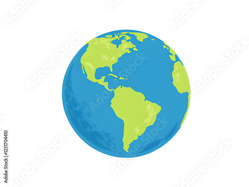 Illustration of Earth with continents in green and oceans in blue on a white background.