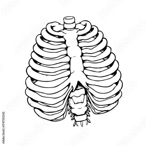 Illustration of rib cage and spine skeletal framework demonstrating biological structure for