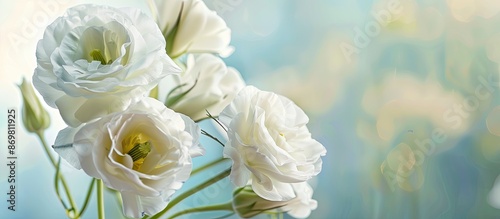 Image featuring lovely eustoma flowers on a bright backdrop with copy space image available.