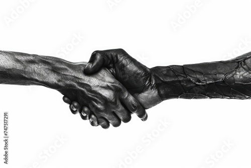 Image of two hands shaking in black and white. Suitable for business and partnership concepts