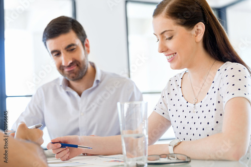 Image of two young business people in office