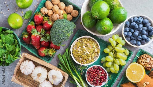 Imagen de mucha fruta y verduras frescas en diferentes bandejas. alta calidad hd, detalles y texturas