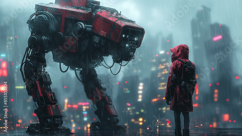 Imagine about the highest technology of humanity and a half of human with robot. Highest techology concepts in next 50 years. Generative AI Illustrations.