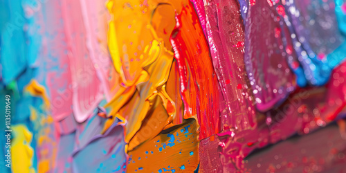 Impasto Oil Paint Texture: Close-up of Multicolored Paint Strokes