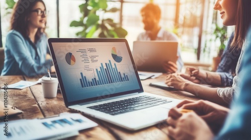 In a modern office conference room, a diverse team of business professionals meets. Ambitious and creative startup entrepreneurs discuss data analysis, app development, and product concepts