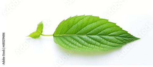 In a white isolated background, a vibrant green leaf symbolizes the health benefits of a plant-based diet, which promotes a healthy lifestyle and manages diabetes naturally. The organic and natural