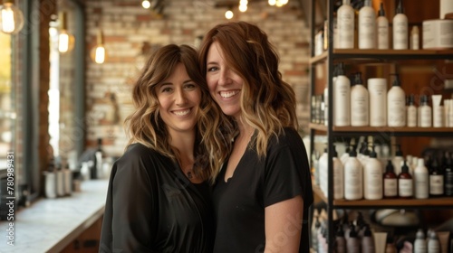 In the bustling salon two hairdressers pause for a moment to examine their latest creation a stunning hair and color that could only be achieved through the combined skills and creativity .