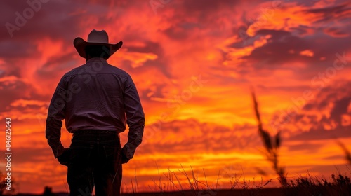 In the midst of the intense competition a cowboy takes a moment to admire the breathtaking sunset reminding himself of the beauty in the chaos.