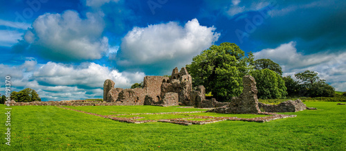 Inch Abbey in Northern Ireland. Monastery ruins in Downpatrick. Co. Down. Travel by car in summer.