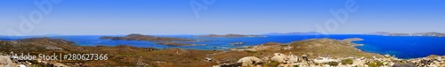 incredible panoramic view of the Cyclades Islands from Mount Kinthos, the highest point of the island of Delos
