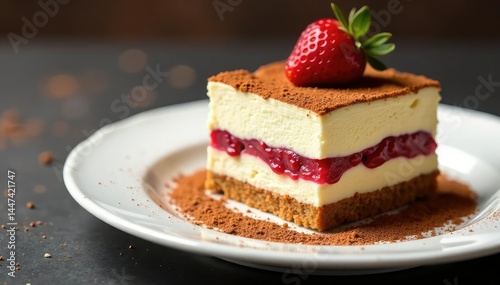 Individual tiramisu portion, dusted cocoa, elegant presentation, isolated, image