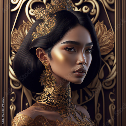 indonesia, indonesian beauty, beautiful, mesmerizing, flawless, exotic, portrait, lady, woman, ornaments, batak, toraja, balinese, ethnic, tribe, ai generative