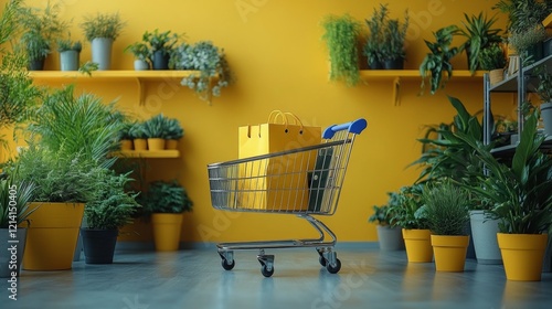 Indoor plant display in a modern retail setting