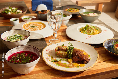 Indulge in a Gourmet Culinary Experience Featuring an Array of Assorted Dishes and Beverages
