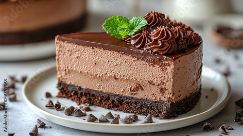 Indulge in this elegant chocolate cheesecake slice, perfect for World Vegan Month celebrations or dessert menus, inviting a sense of fresh luxury and deliciousness.