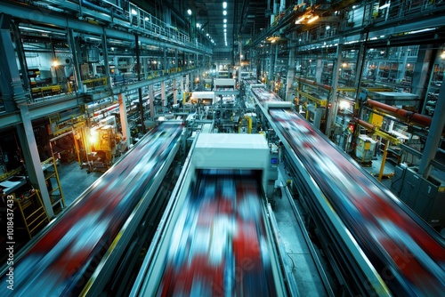 Industrial Conveyor Belts Moving Products Through Factory