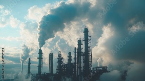 Industrial plant emissions under a cloudy sky, representing the environmental impact of chemical production
