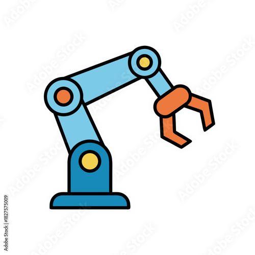 Industrial Robotic Arm With Claw In Light Blue And Orange Colors Flat Vector Art Isolated On Black Background With White Outline
