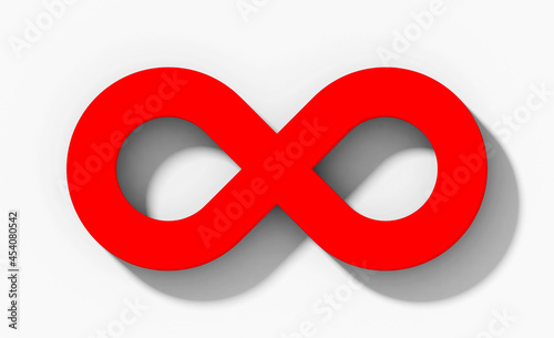 Infinity symbol 3d red isolated orthogonal with shadow on white background