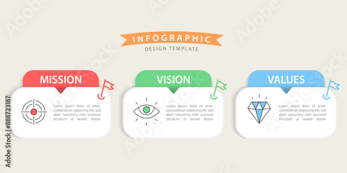 Infographic 3 Step timeline journey, calendar Flat simple infographics design template. Mission, vision and values concept with 3 options, vector illustration.