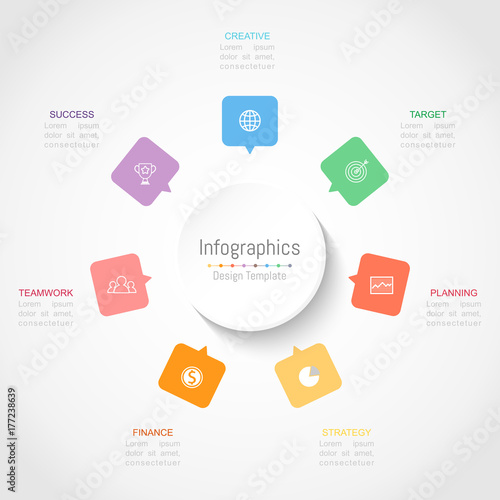 Infographic design elements for your business data with 7 options, parts, steps, timelines or processes. Vector Illustration.