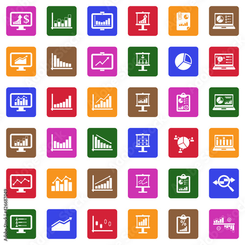 Infographic Icons. White Flat Design In Square. Vector Illustration.
