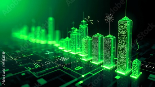 Infographic-style illustration showing the growth of digital assets in a green economy, featuring graphs, renewable energy icons, and digital elements in a clean, modern layout