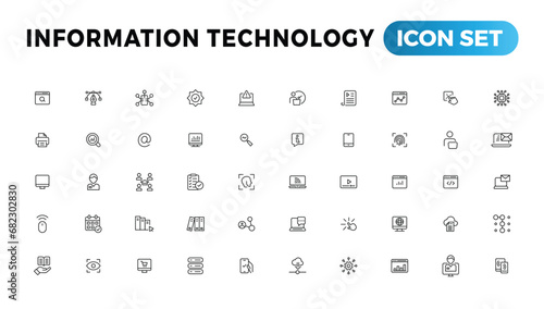 Information technology line icons collection. Big UI icon set in a flat design. Thin outline icons pack