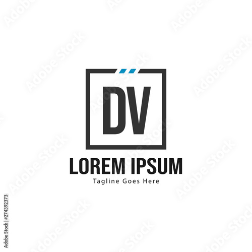 Initial DV logo template with modern frame. Minimalist DV letter logo vector illustration