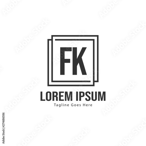 Initial FK logo template with modern frame. Minimalist FK letter logo vector illustration