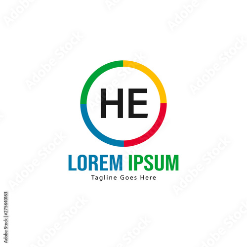 Initial HE logo template with modern frame. Minimalist HE letter logo vector illustration