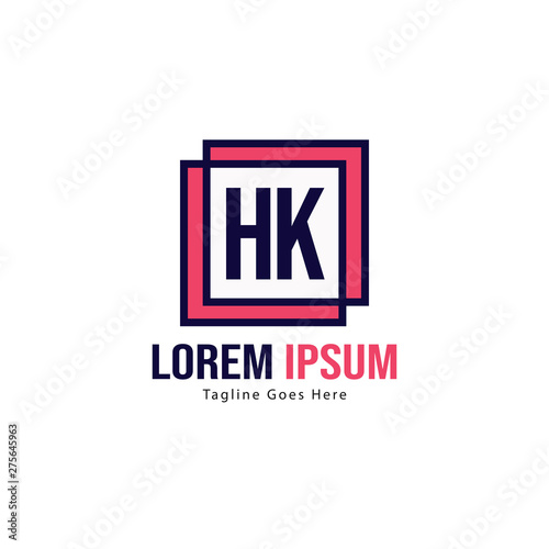 Initial HK logo template with modern frame. Minimalist HK letter logo vector illustration