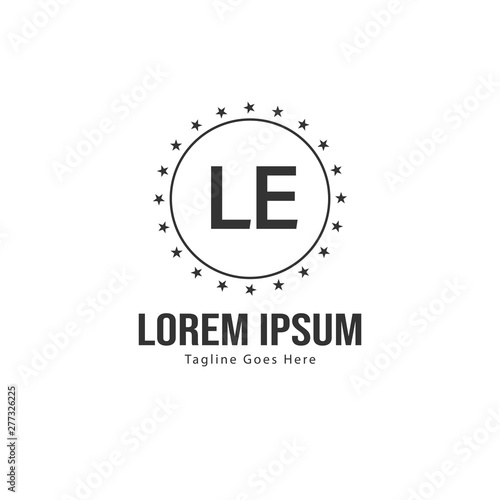 Initial LE logo template with modern frame. Minimalist LE letter logo vector illustration
