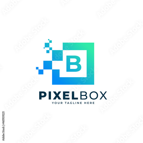 Initial Letter B Digital Pixel Logo Design. Geometric Shape with Square Pixel Dots. Usable for Business and Technology Logos