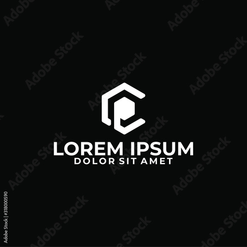Initial letter CP or ce logo template with 3d cube hexagonal symbol in flat design monogram illustration