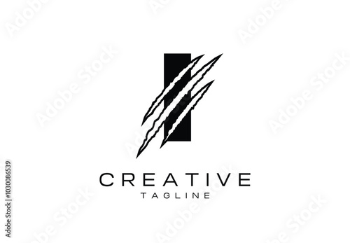 Initial Letter I and Claw, Scratch Logo Design Template - Vector