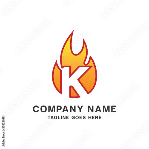 Initial Letter K with Flame Fire Logo Design Template