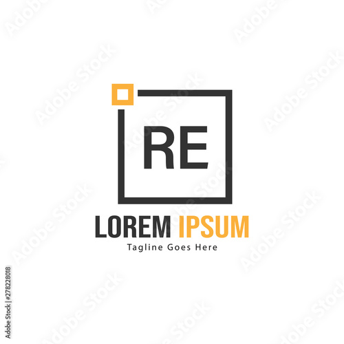 Initial RE logo template with modern frame. Minimalist RE letter logo vector illustration