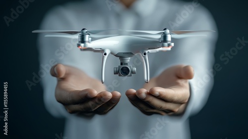 Innovating Tomorrow - Leader Presenting Advanced Drone Prototype for Future Transportation in Dynamic Futuristic Setting