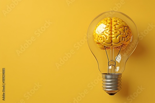 Innovative Concept of a Brain Inside a Light Bulb - Representing Ideas and Creativity