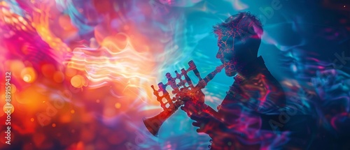 Innovative Neonlit Breton Bagpipes in 3D CloseUp