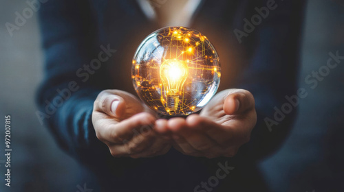 Innovative person holding glowing globe filled with bright ideas, symbolizing creativity and inspiration. This image captures essence of imagination and potential